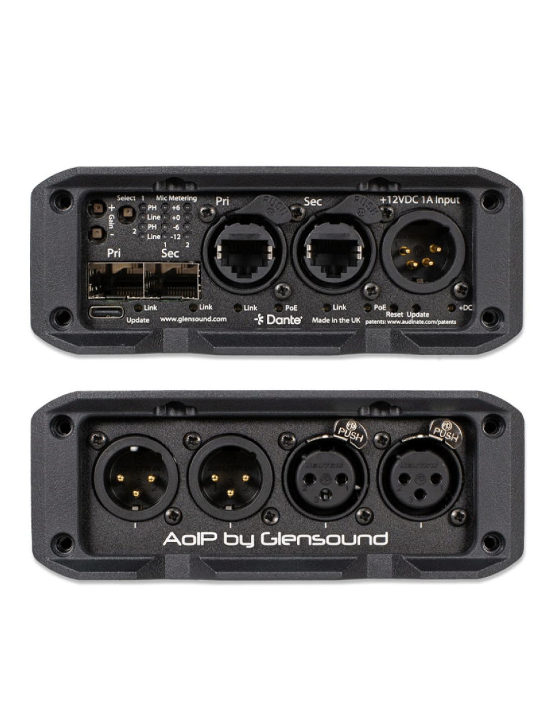 Cette interface compacte offre 2 canaux de traitement bi-directionnel haut-de-gamme (entrées et sorties sur XLR avec alimentation phantom 12V) pour interfacer des signaux audio analogiques micro/ligne avec un réseau numérique Dante® (avec redondance !). L'alimentation du boitier est assurée via PoE, le gain peut être réglé directement via le boitier, tandis qu'une application Windows 10 permettra de plus amples contrôles à distance.