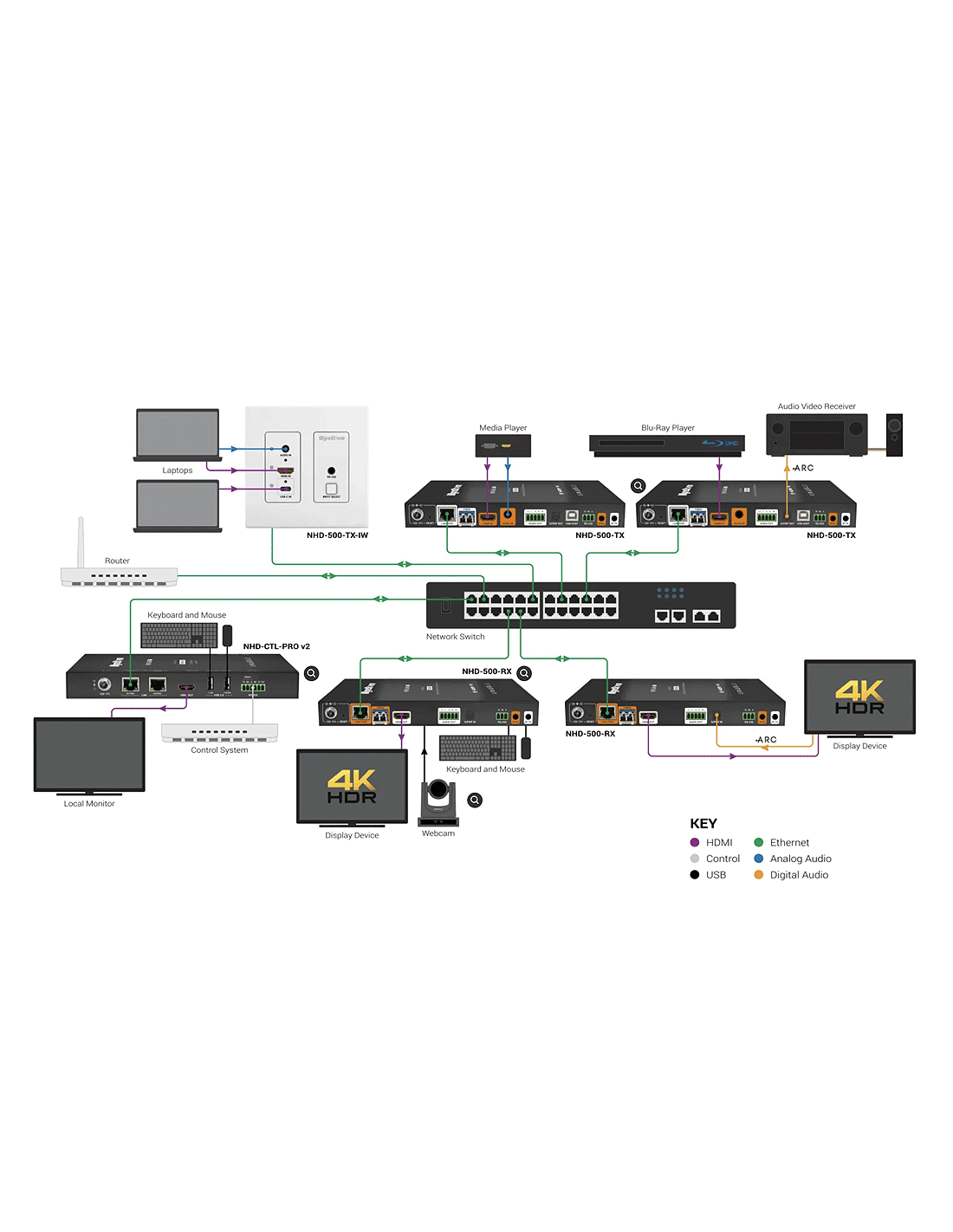 Le NHD-500-IW-TX n'est qu'un des nombreux modèles de la série NetworkHD 500. Mélangez et assortissez différents modèles pour adapter votre système à vos besoins. Tous sont contrôlés et entretenus par le contrôleur NHD-CTL-PRO.
