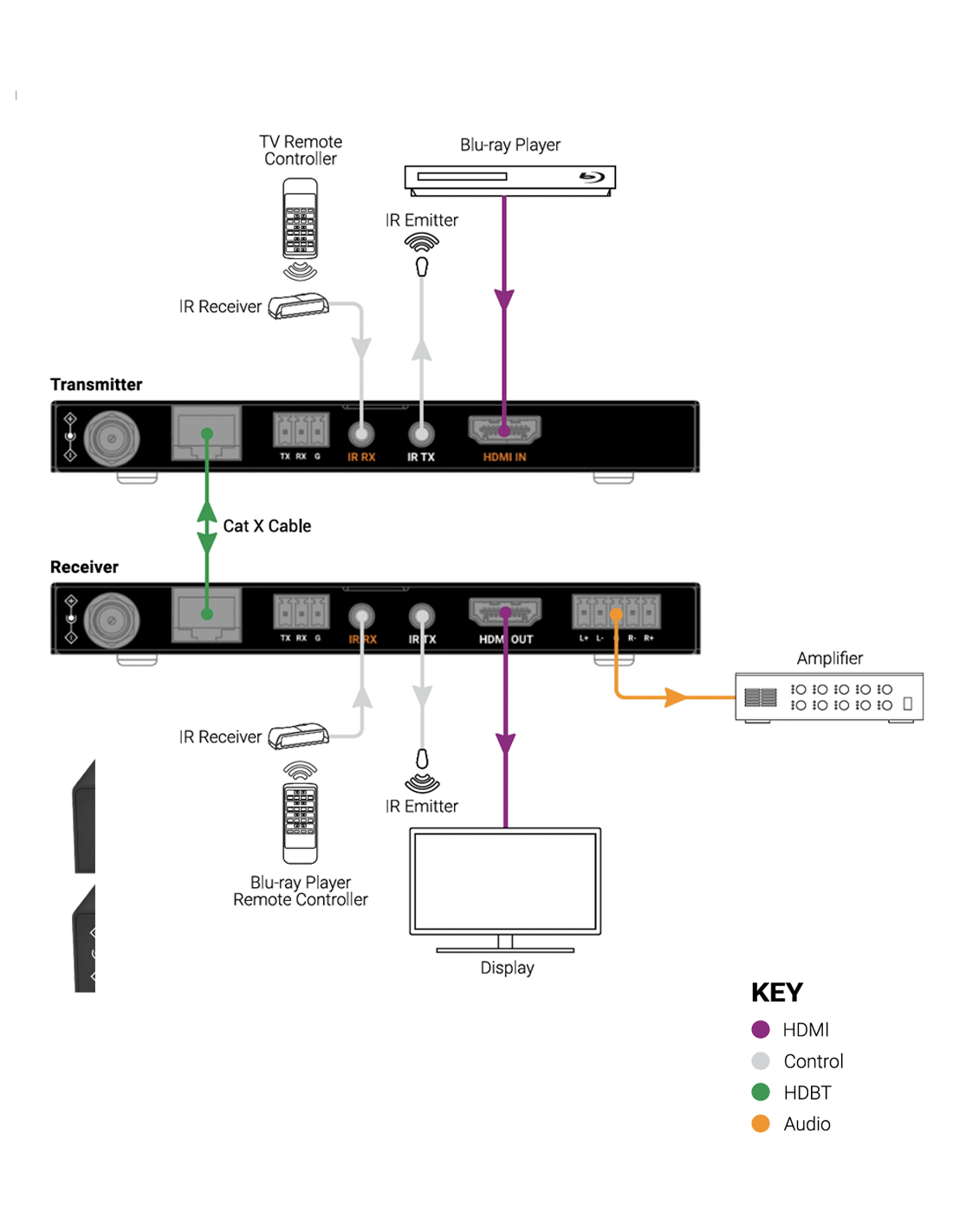Gérez de manière transparente tous les appareils connectés avec le passage IR bidirectionnel et le passage RS232 (jusqu'à 115 200 bps), permettant aux systèmes de contrôle centralisés de communiquer avec les sources et les écrans à chaque extrémité.