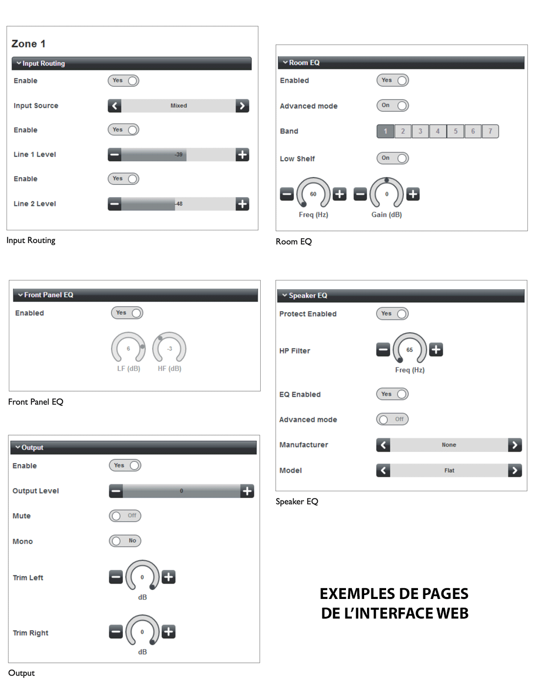 - Ethernet / RS232 (Contrôle du niveau, de la source et de l'égalisation)