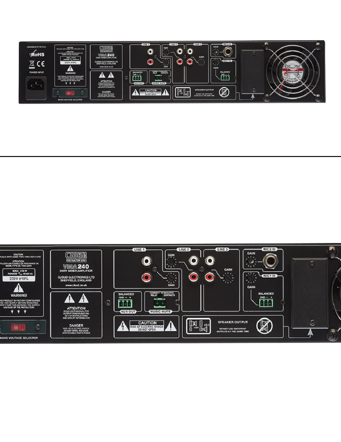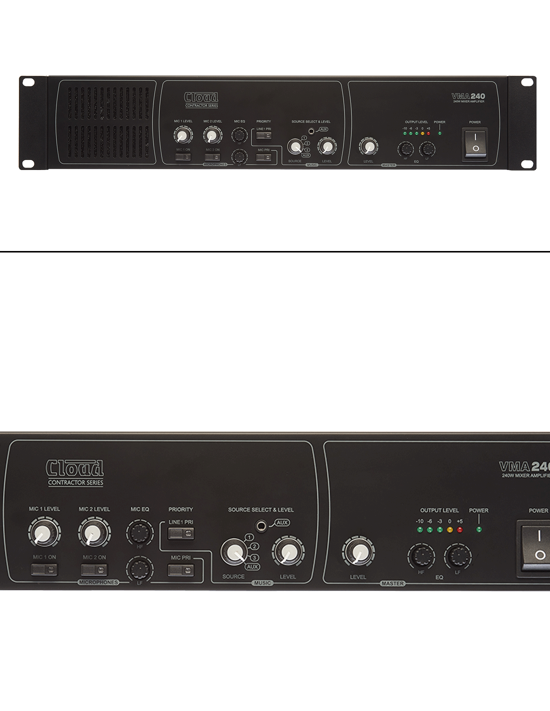 Le Cloud VMA240 est un mélangeur amplifié mono économique conçu pour une utilisation dans une large gamme d'environnements commerciaux. Il est conçu pour une installation simple et une utilisation intuitive, tout en offrant un ensemble pratique de fonctionnalités et d'options de configuration. Son format compact et sa capacité à alimenter enceintes basse comme haute impédance, en font une solution idéale et versatile pour les petites applications dans les secteurs de l'hôtellerie et du commerce de détail.