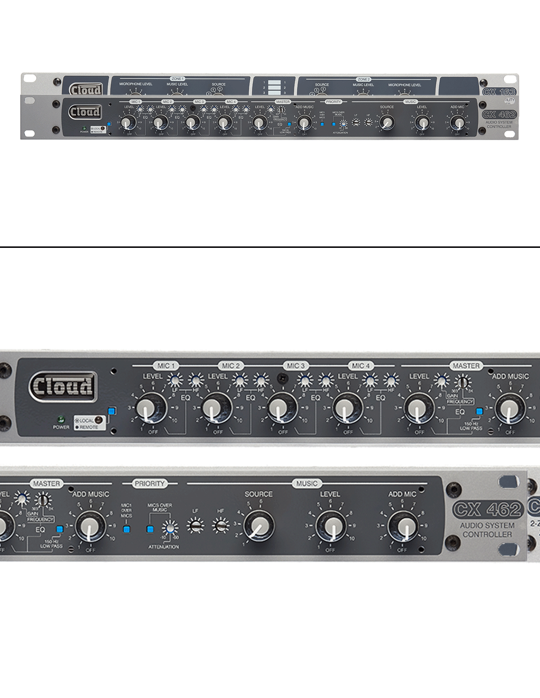 Le Cloud CX462 est un mélangeur audio stéréo polyvalent, conçu pour les installations audio fixes utilisant plusieurs microphones et sources musicales. Il est particulièrement adapté aux présentations audiovisuelles dans les salles de formation, les amphithéâtres, les lieux de culte et autres établissements commerciaux et de loisirs nécessitant un système audio flexible pour la musique et les annonces.