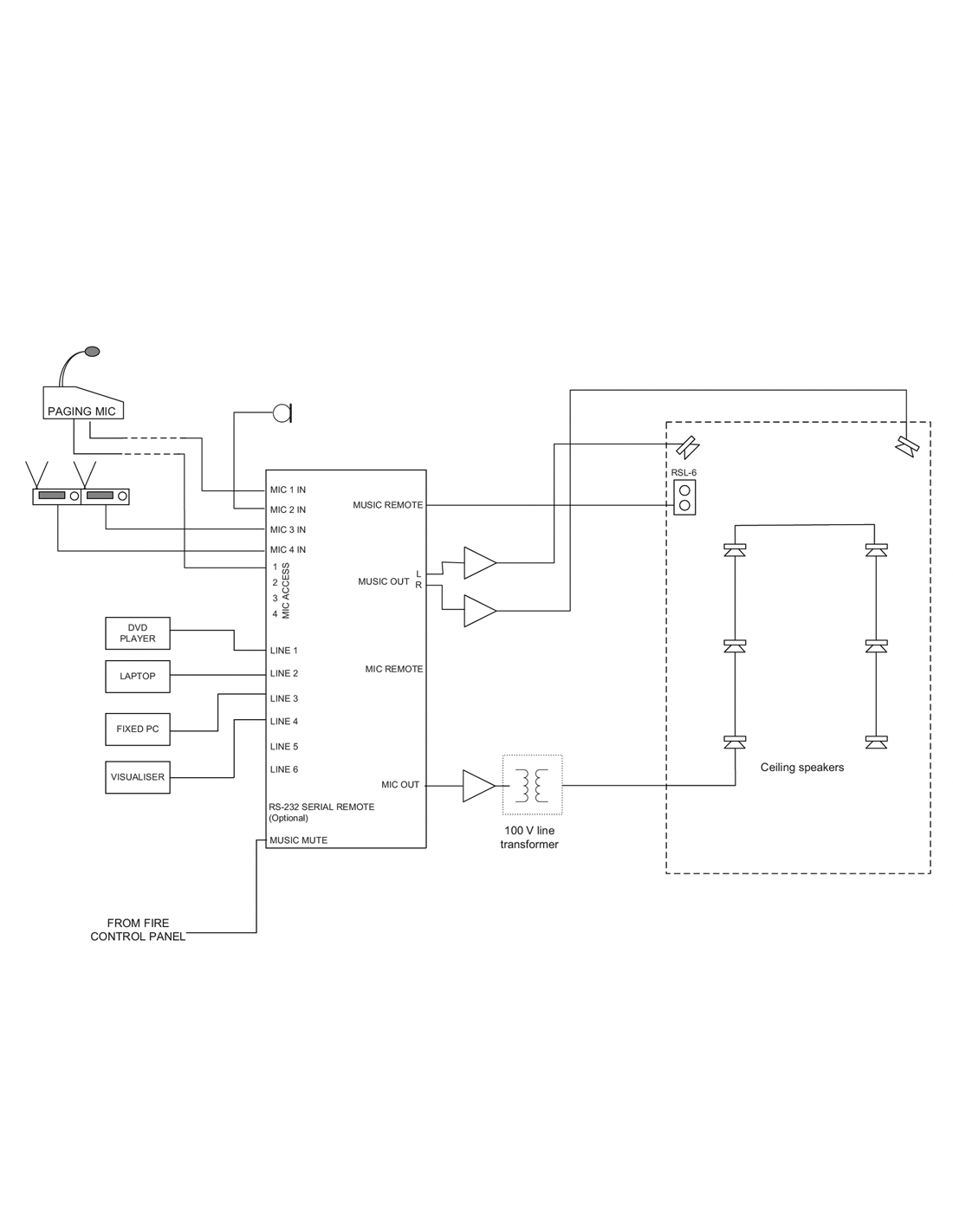 - 6 entrées ligne stéréo asymétriques avec gain individuel