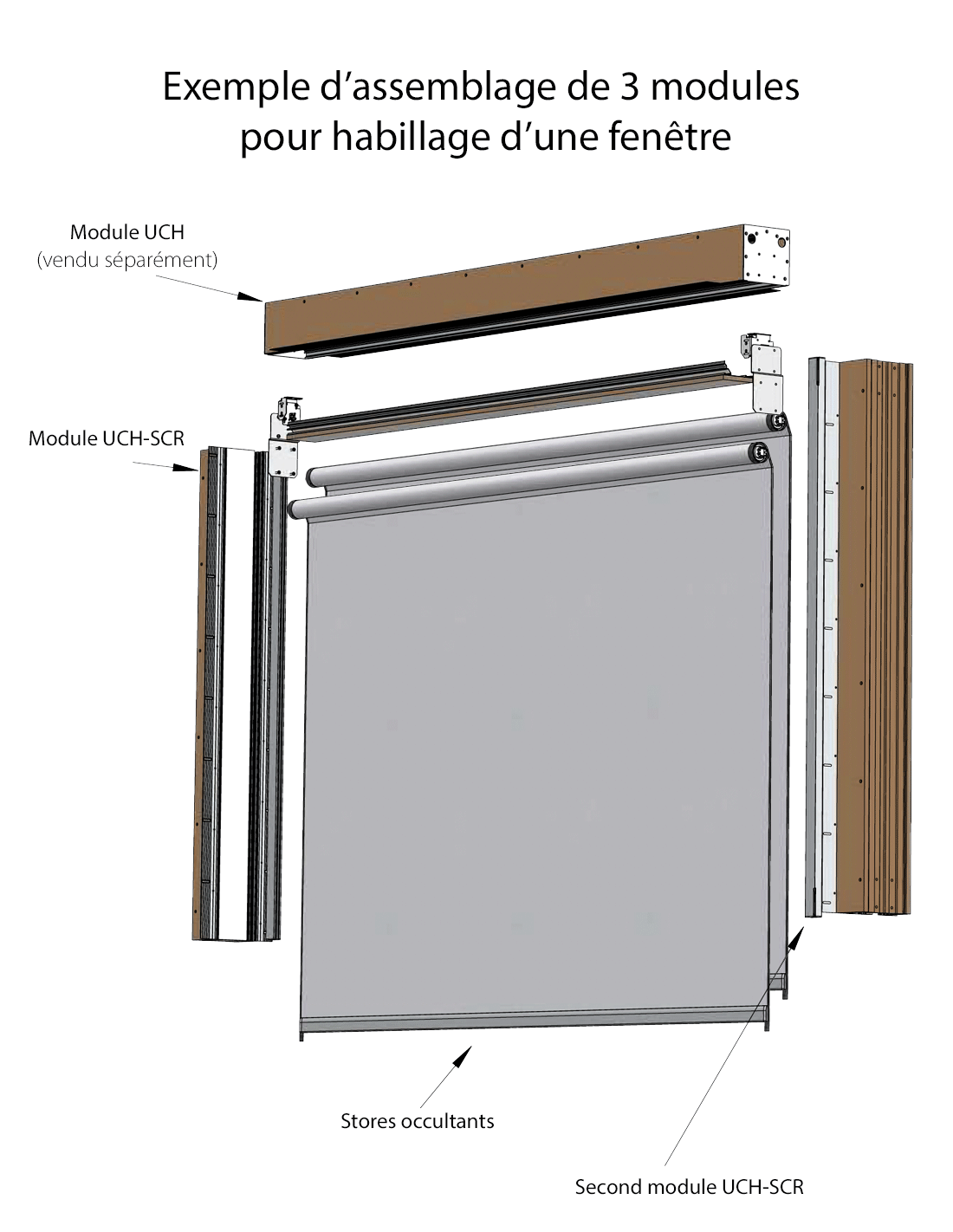 Le module UniChannel (UCH) intègre directement dans une structure MDF facile à assembler grâce à un système ingénieux d'encoches et de fixations rapides. Des pièces en aluminium usinées permettant de simplifier l'installation des stores, tout en rendant la solution moins coûteuse.