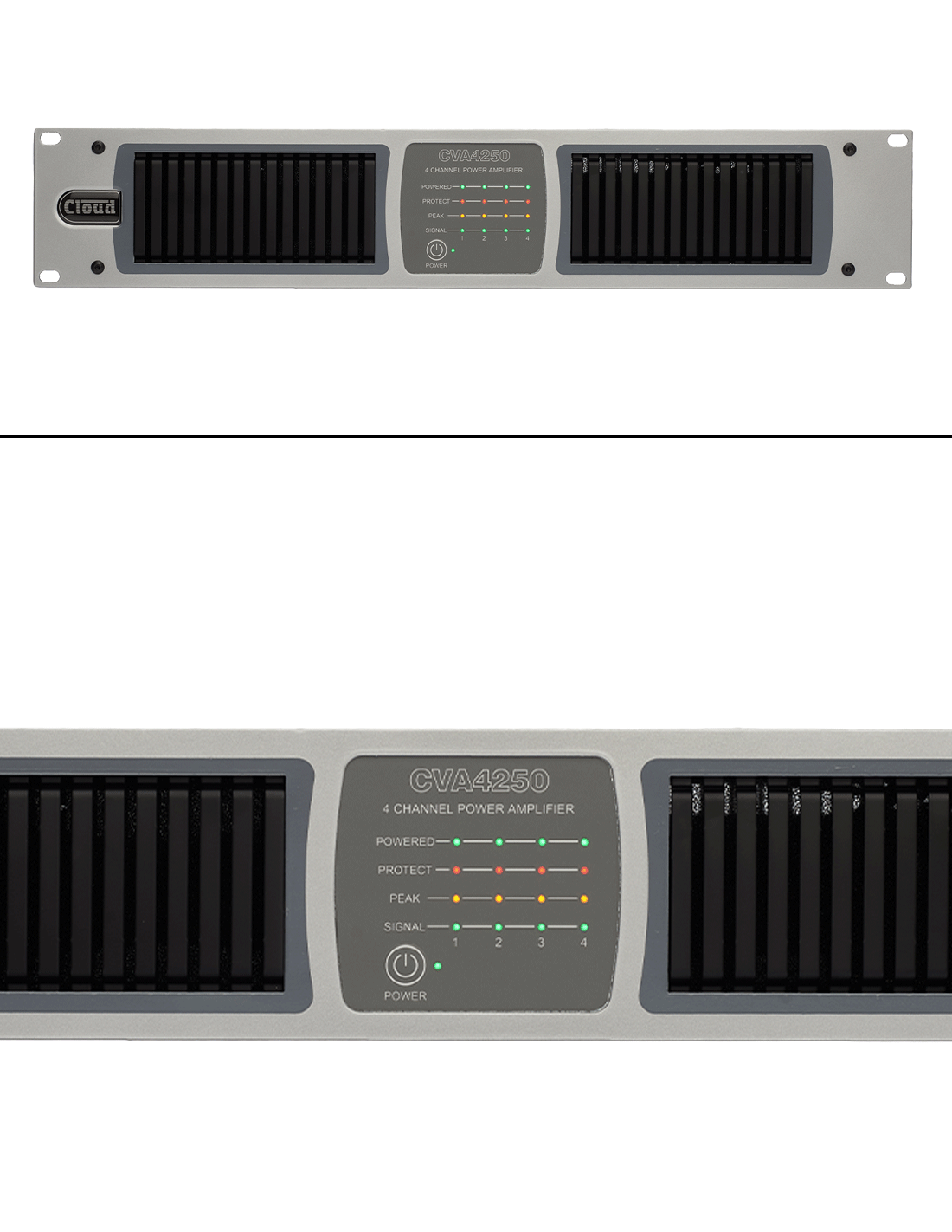 Tous les modèles de la gamme CVA offrent une puissance de sortie totale de 1 kW, répartie entre les canaux de l'amplificateur. Cette approche flexible permet à un seul amplificateur multicanal de piloter des systèmes de haut-parleurs de puissances différentes, dans diverses zones d'un bâtiment ou d'une salle, tout en optimisant la puissance de sortie globale. (partage de puissance en mode 100V uniquement).