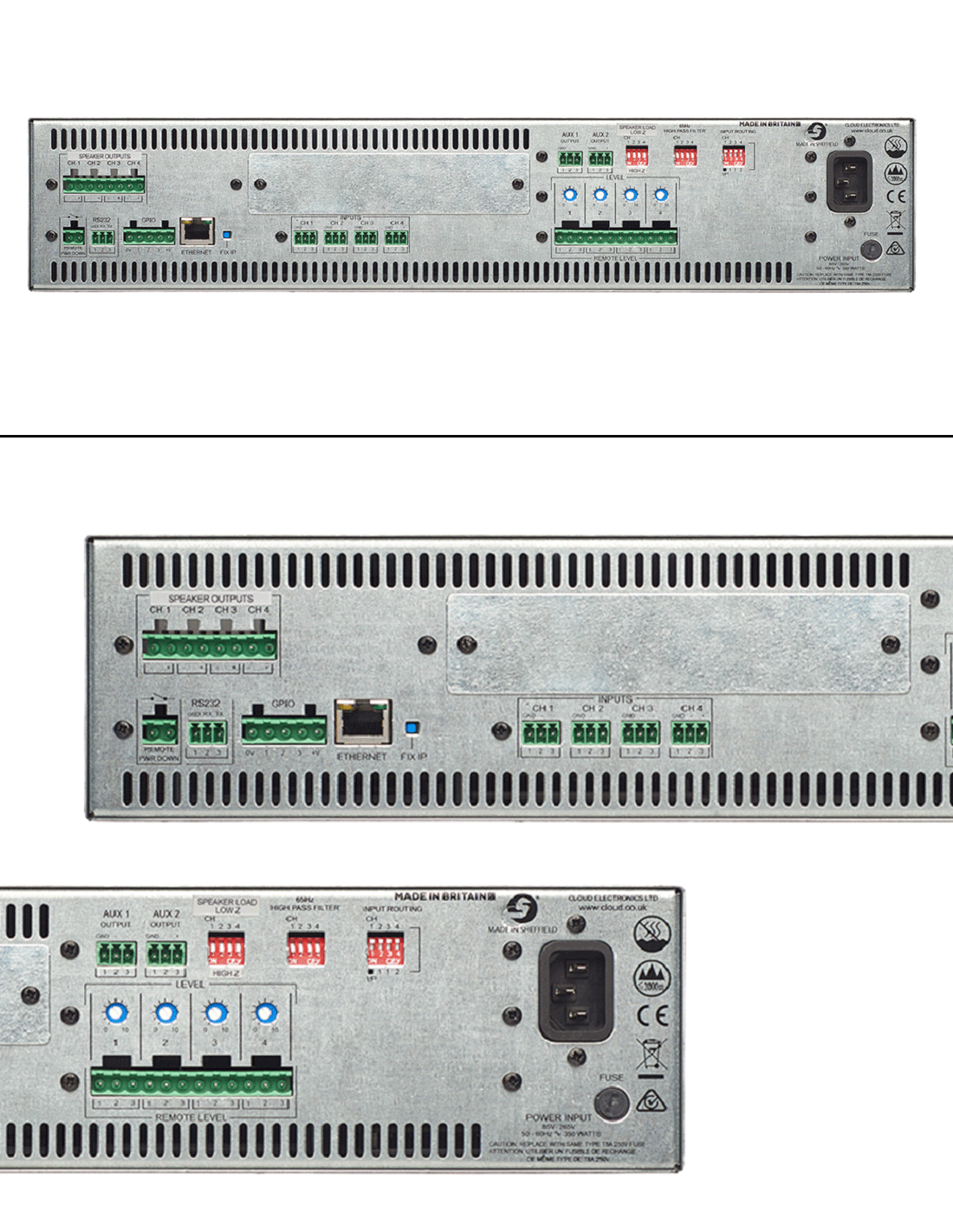 - 4 x 250W @ 4/8/16Ω (Lo-Z)