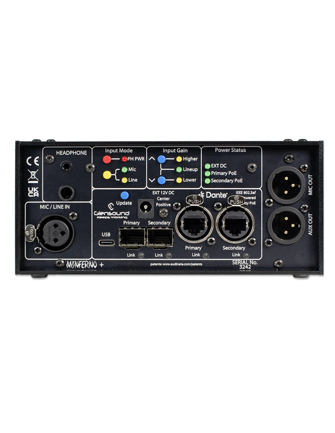 MINFERNO/2+ est une version plus petite et encore plus facile à utiliser, du pupitre commentateur AoIP Dante INFERNO. Il embarque 2 circuits Talckback et une sortie analogique commutée de l'entrée micro sur le panneau arrière pour la redondance en cas de défaillance du réseau.