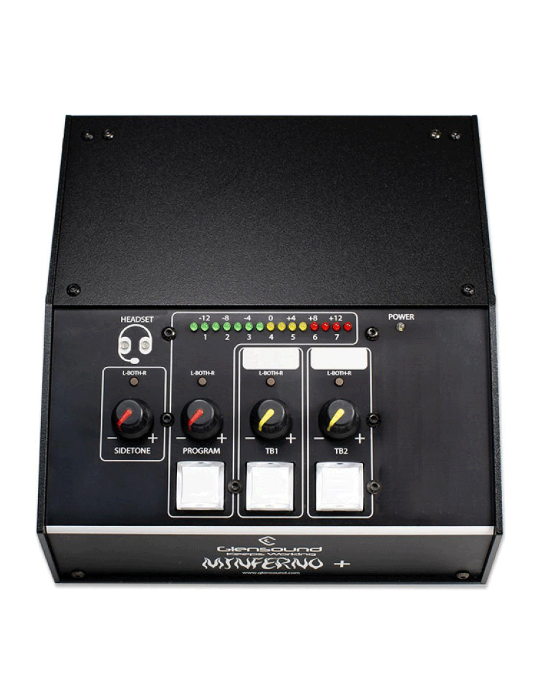 Comme toutes les unités de commentaires Glensound, le MINFERNO est doté d'un circuit limiteur / compresseur maison. Ce circuit commence à compresser progressivement la voix du commentateur et augmente lentement le taux de compression à mesure que le niveau d'entrée devient trop élevé, ce qui offre une sortie audio au son très naturel et sans distorsion, capable de s'adapter même aux commentateurs les plus expressifs.