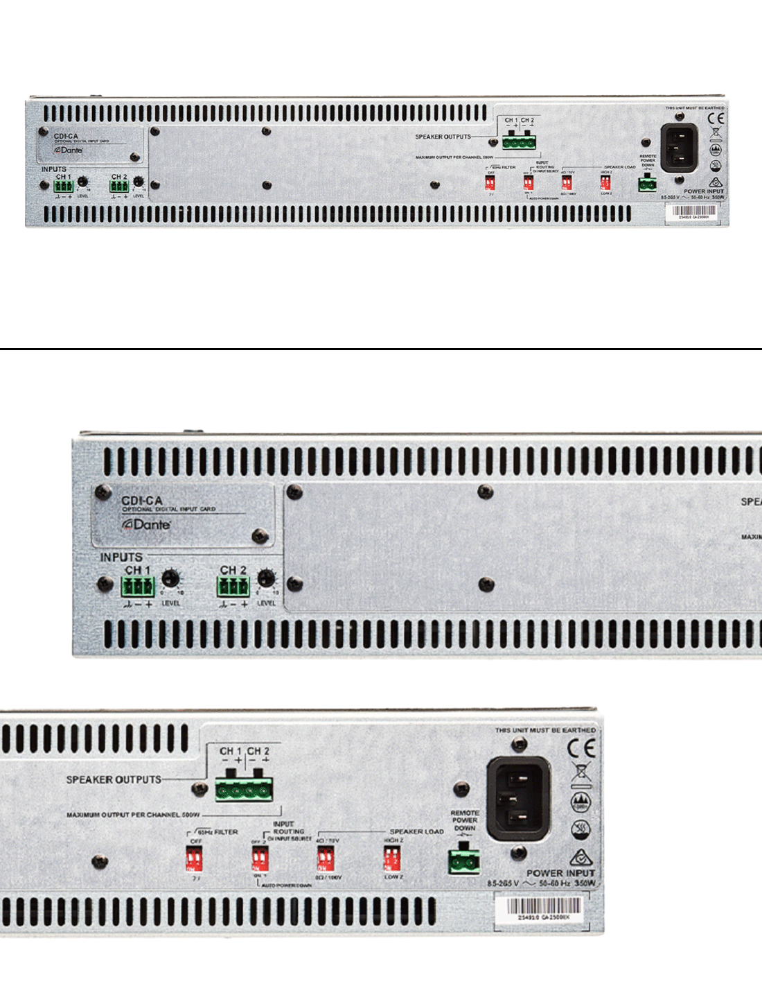 Polyvalent et bénéficiant d'une conception avancée, l'amplificateur CA2500 (format 2RU) peut piloter à la fois des haut-parleurs conventionnels à faible impédance (Lo-Z, 4Ω à 16Ω) et des haut-parleurs couplés par transformateur à haute impédance (Hi-Z, 70V/100V). Il offre deux entrées, chacune étant alimenté par un des deux canaux de l'amplificateur, mais grâce à la technologie de partage automatique de puissance embarquée (fonctionne uniquement en mode Hi-Z), un seul canal pourra délivré jusqu'à 500W (si l'autre n'est pas utilisé).